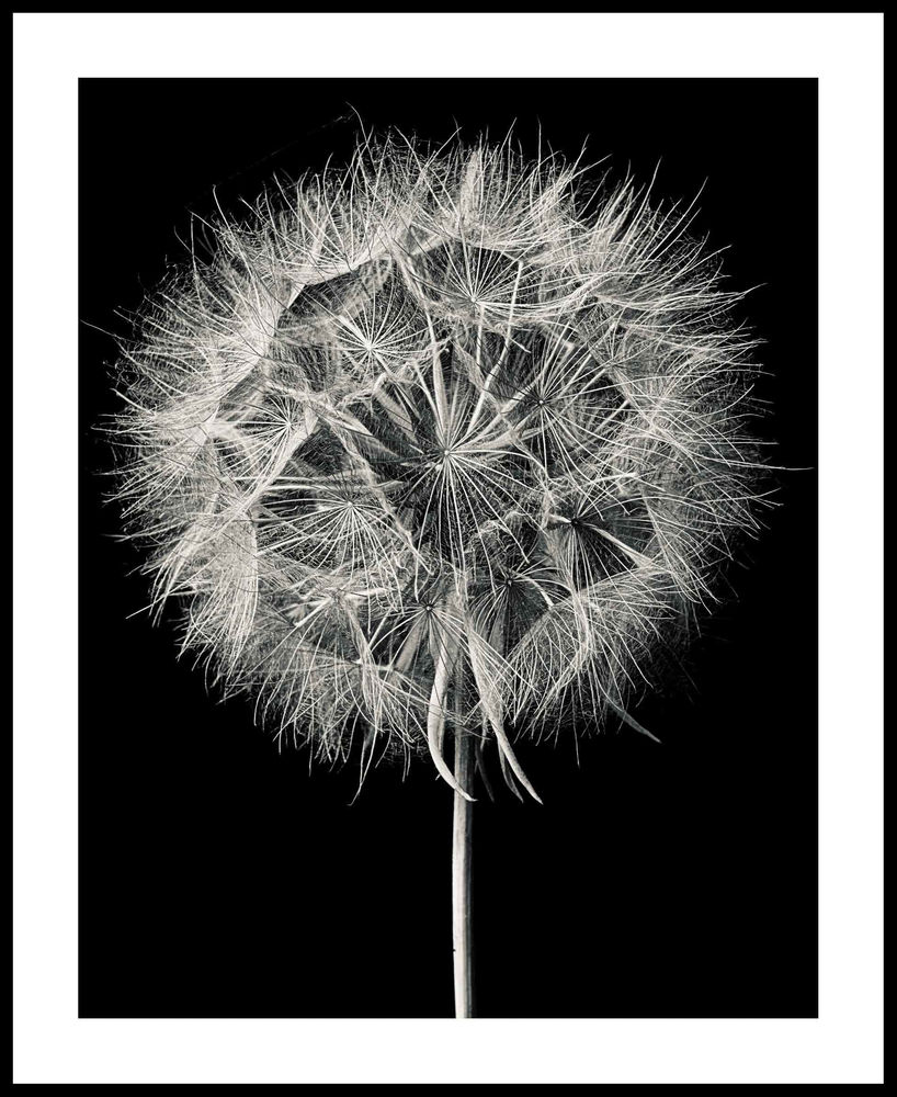 During Covid, Schlegel developed an interest for flowers with the wish to magnify their ephemeral beauty, like a memento mori. Here, he chose the Tragopogon pratensis, commonly unnoticed along gravel roads, and also nicknamed "Jack Go to Bed at Noon" because it blooms in the early morning sun but shies away after midday. Its impressive seedhead is often blown onto in the hope to see one's wishes come true. Using a very thin transparent paper, he extended the life of the fragile flower for thousands of years by using the most archival printing technique: platinum, to which he added white gold to highlight the value of transience.